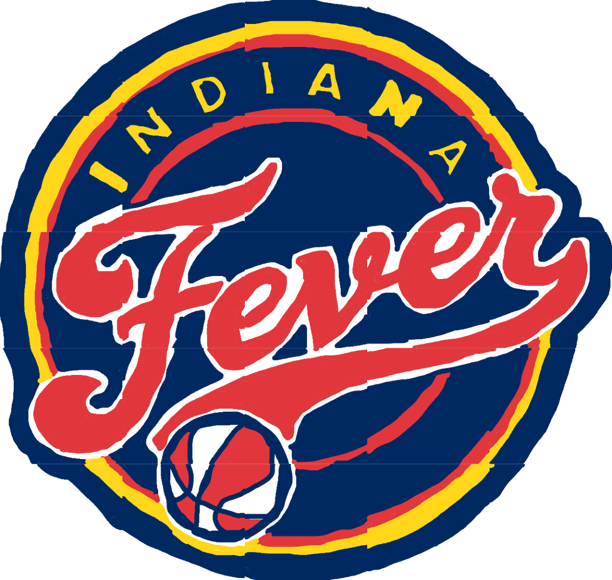 This dynamic logo features the bold 'Indiana Fever' script with energetic swirls and vibrant colors. The basketball element symbolizes action and excitement, capturing the spirit of the team.