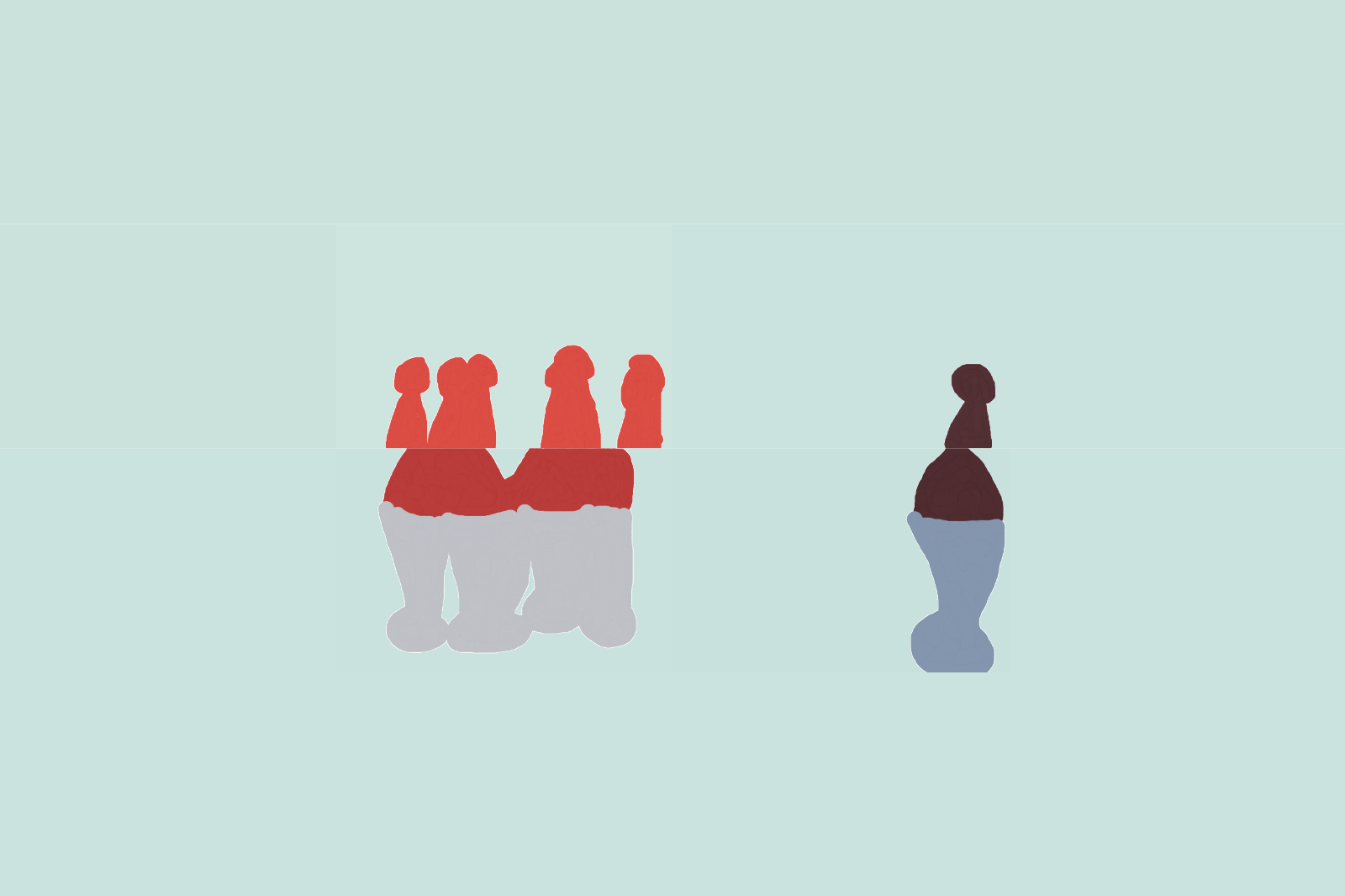 This artwork juxtaposes a group of red figures against a solitary maroon figure. Set on a pale background, it explores themes of community and isolation, creating a visual dialogue on individuality and connection.