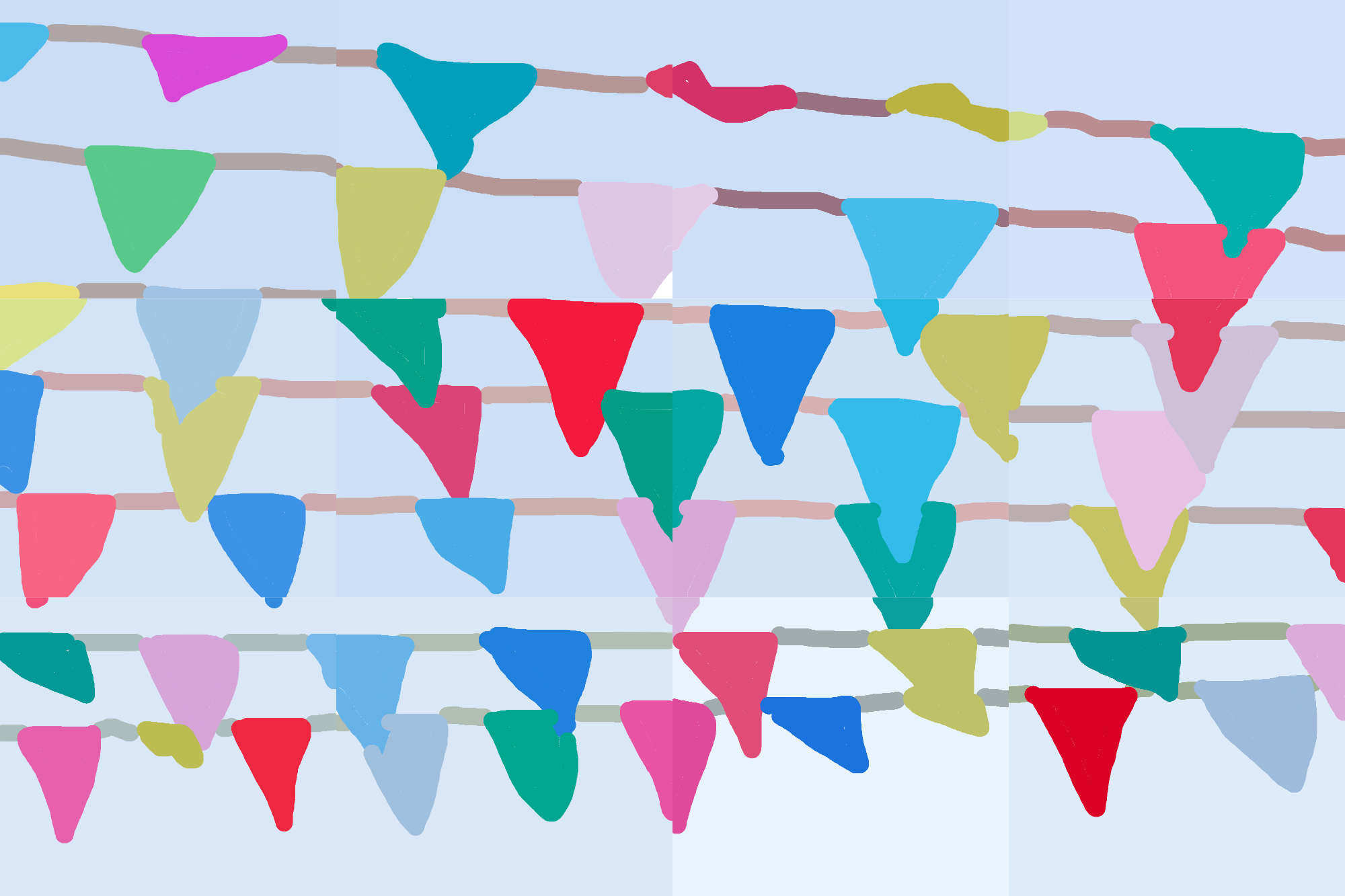 An energetic display of colorful pennants drapes across the sky, capturing a joyful celebration. The vibrant hues and playful arrangement create a sense of party spirit, filling the air with a festive energy.